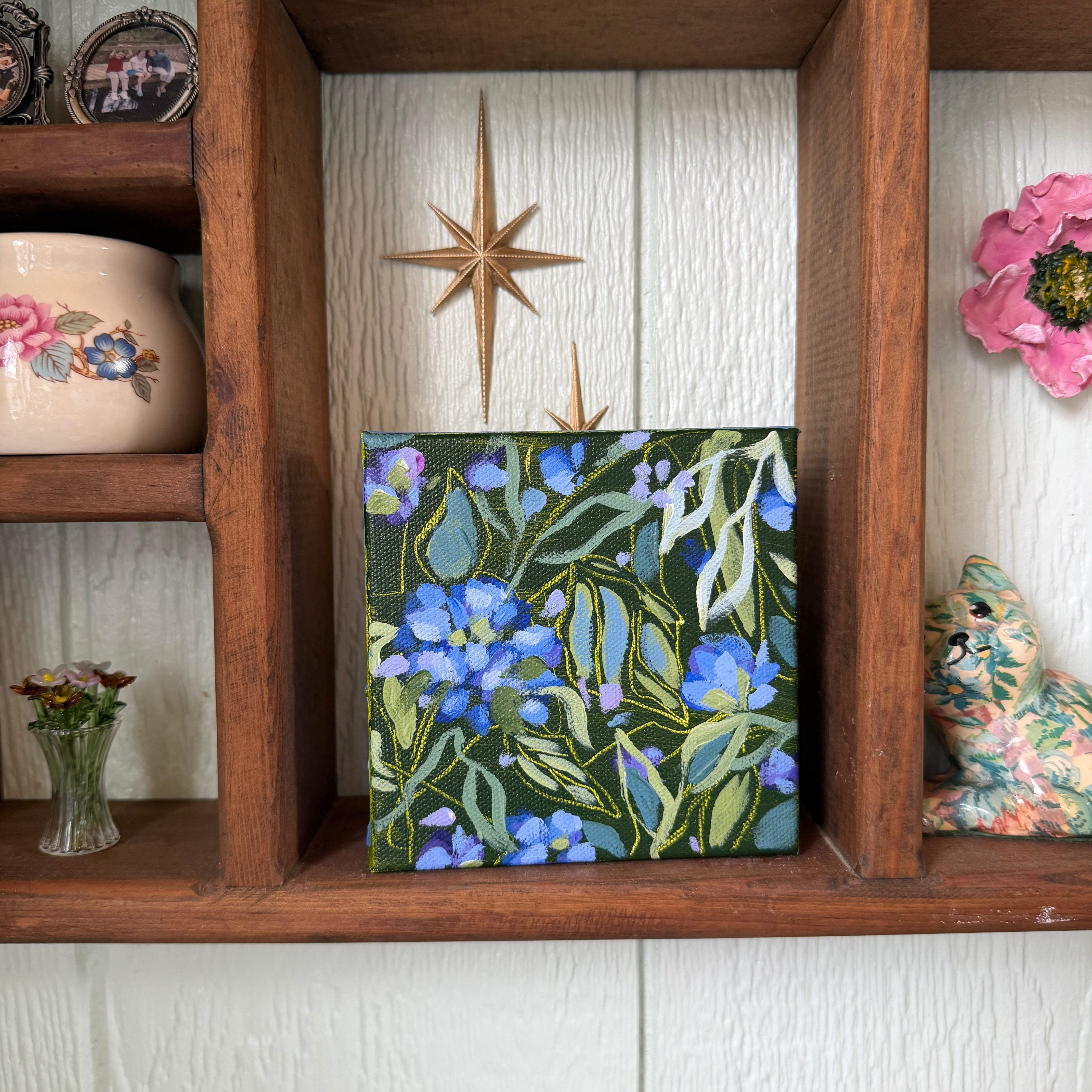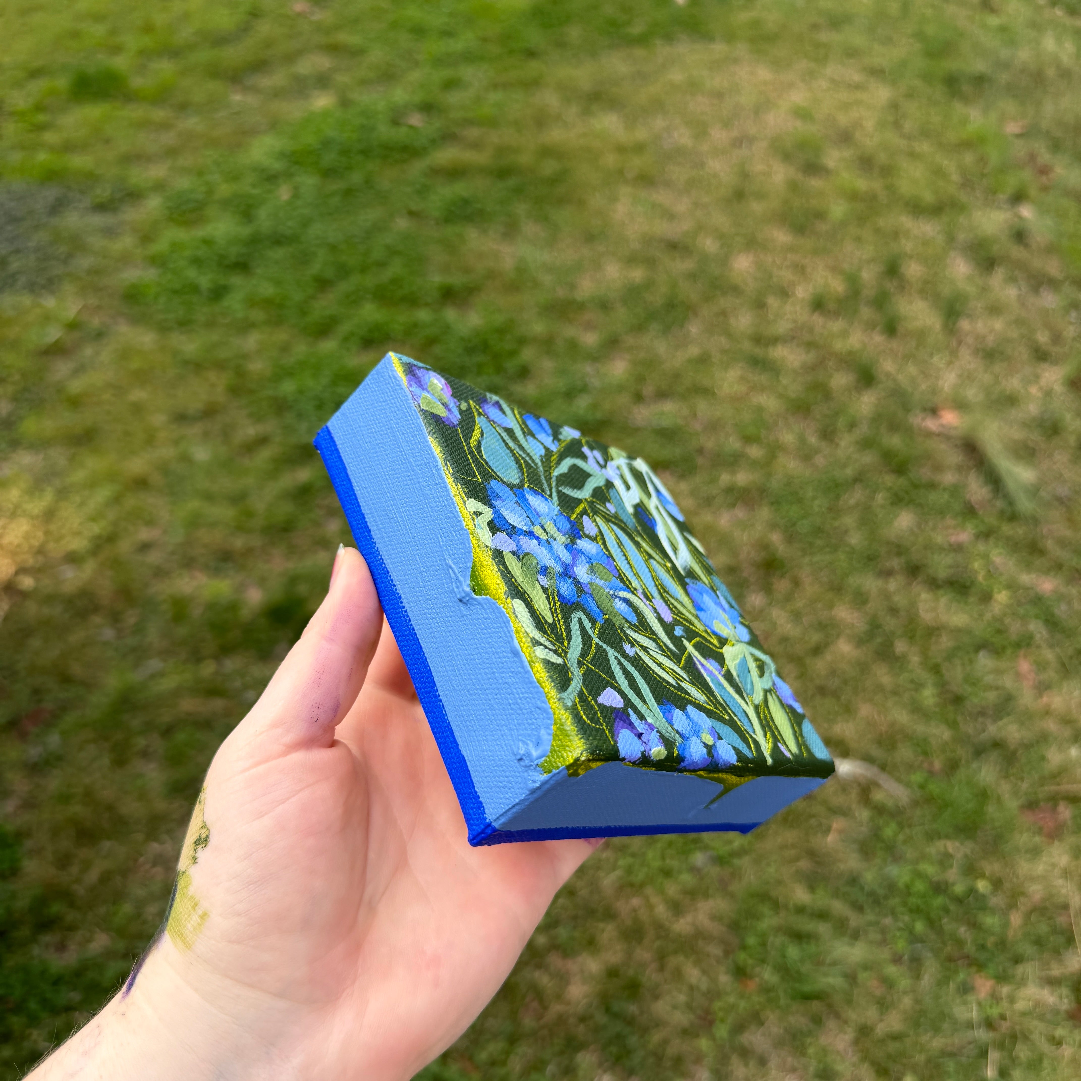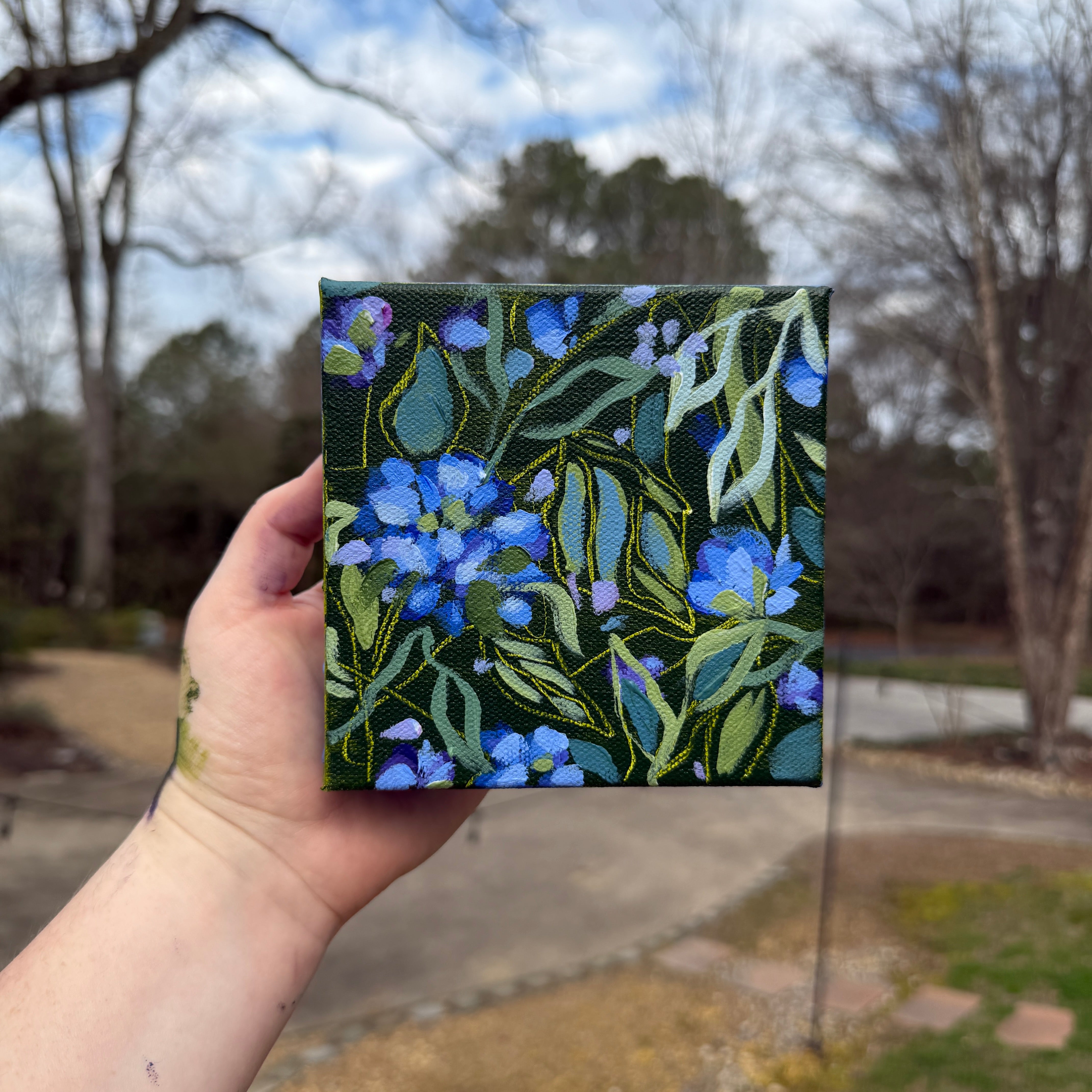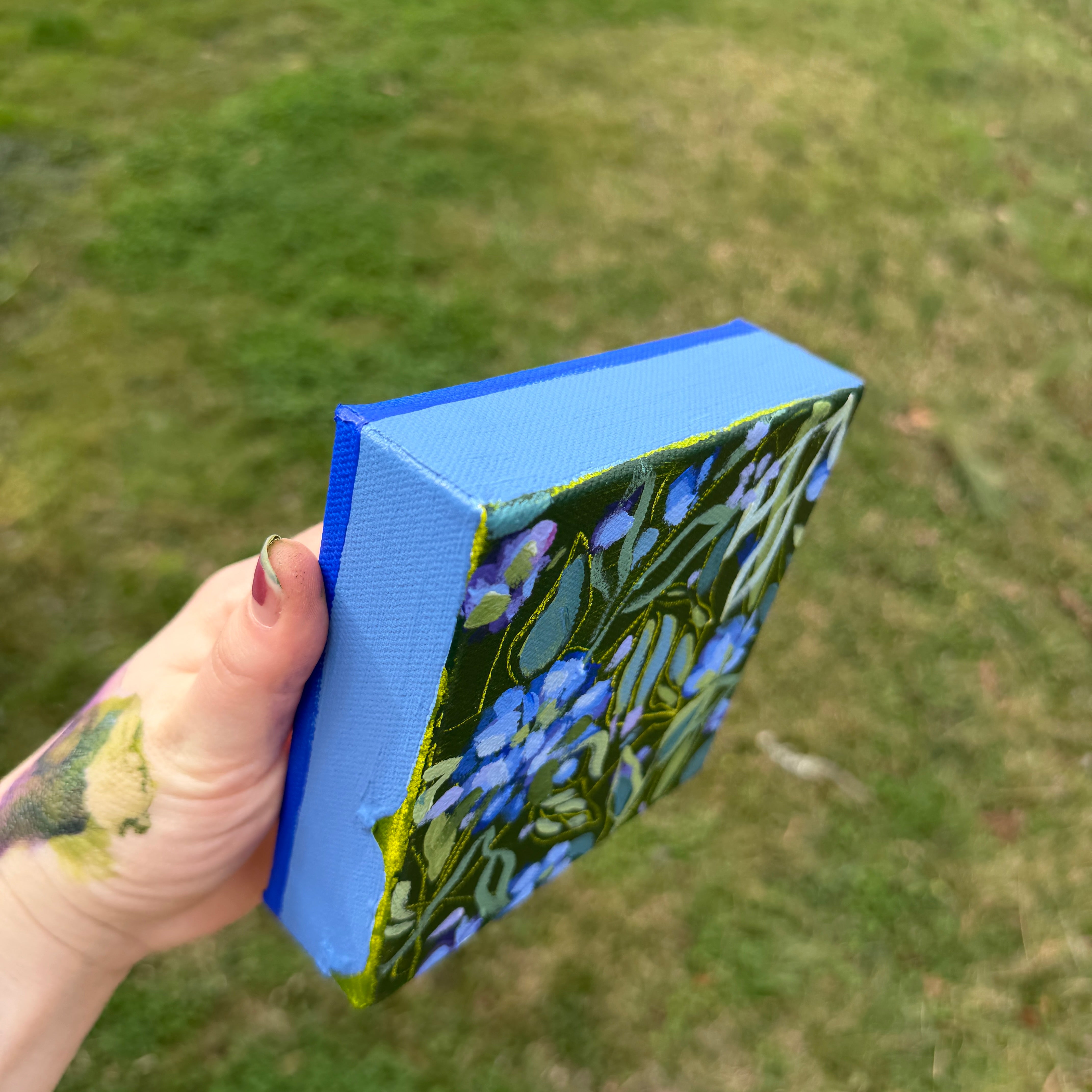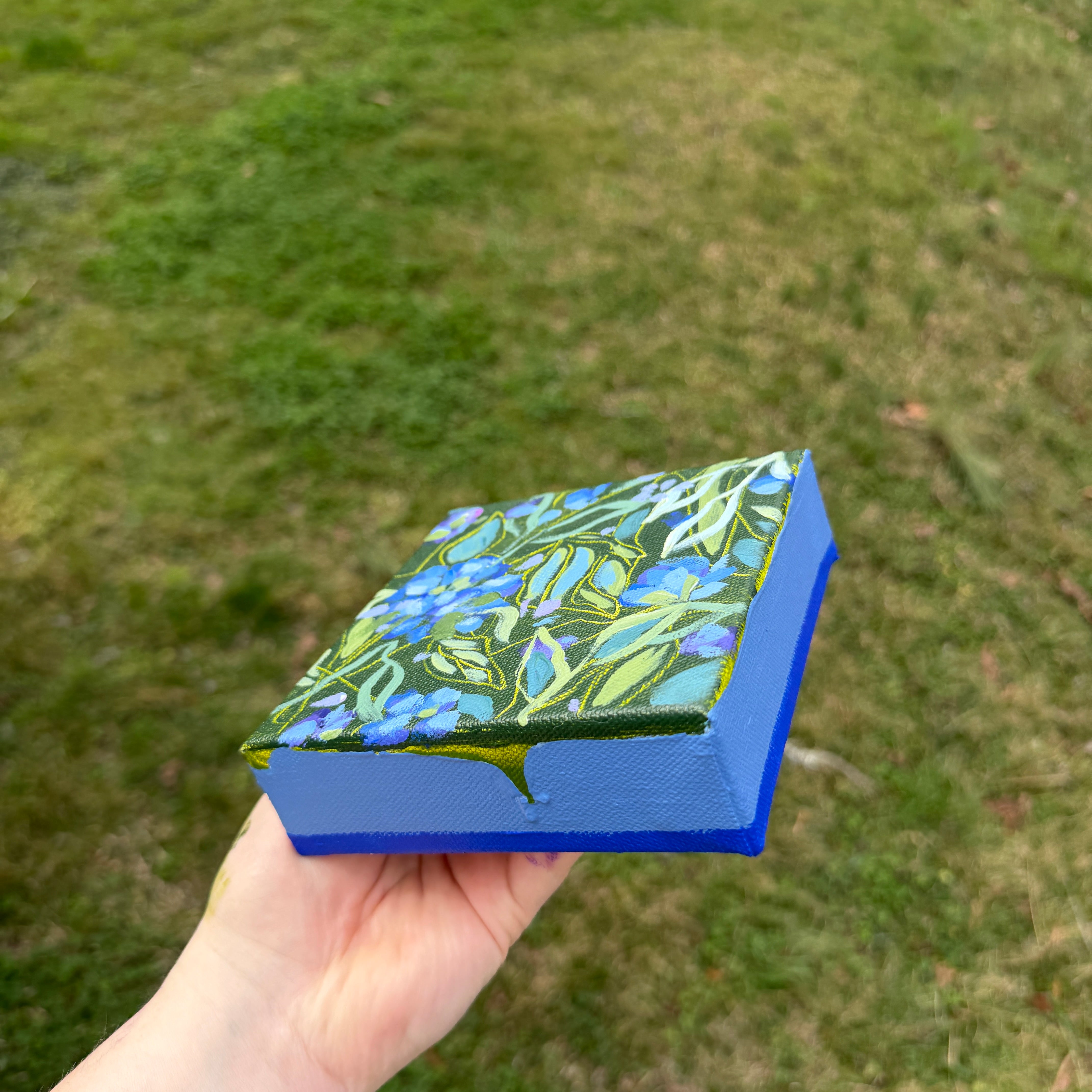 Bright Blue Florals Original Painted Canvas #4